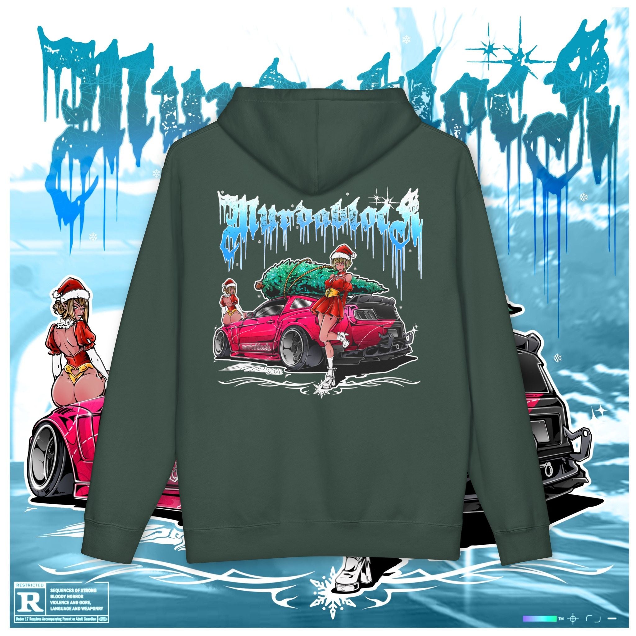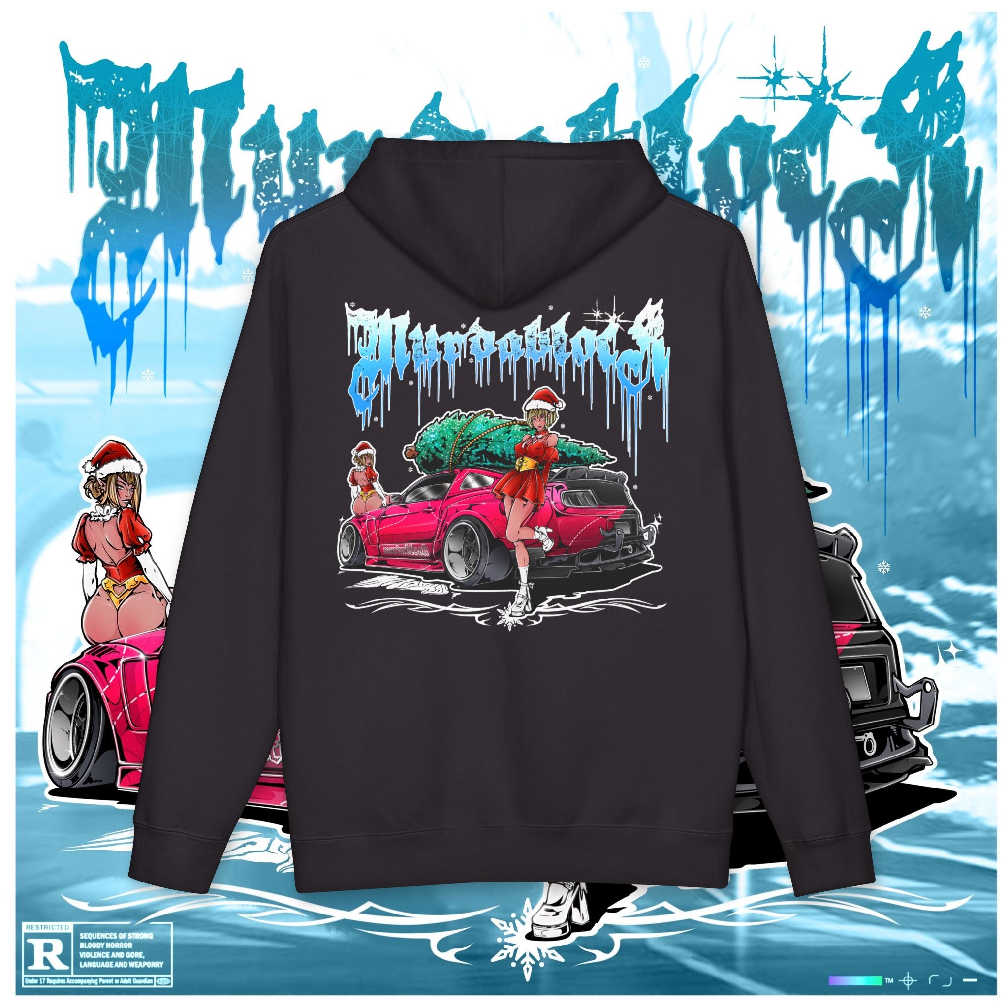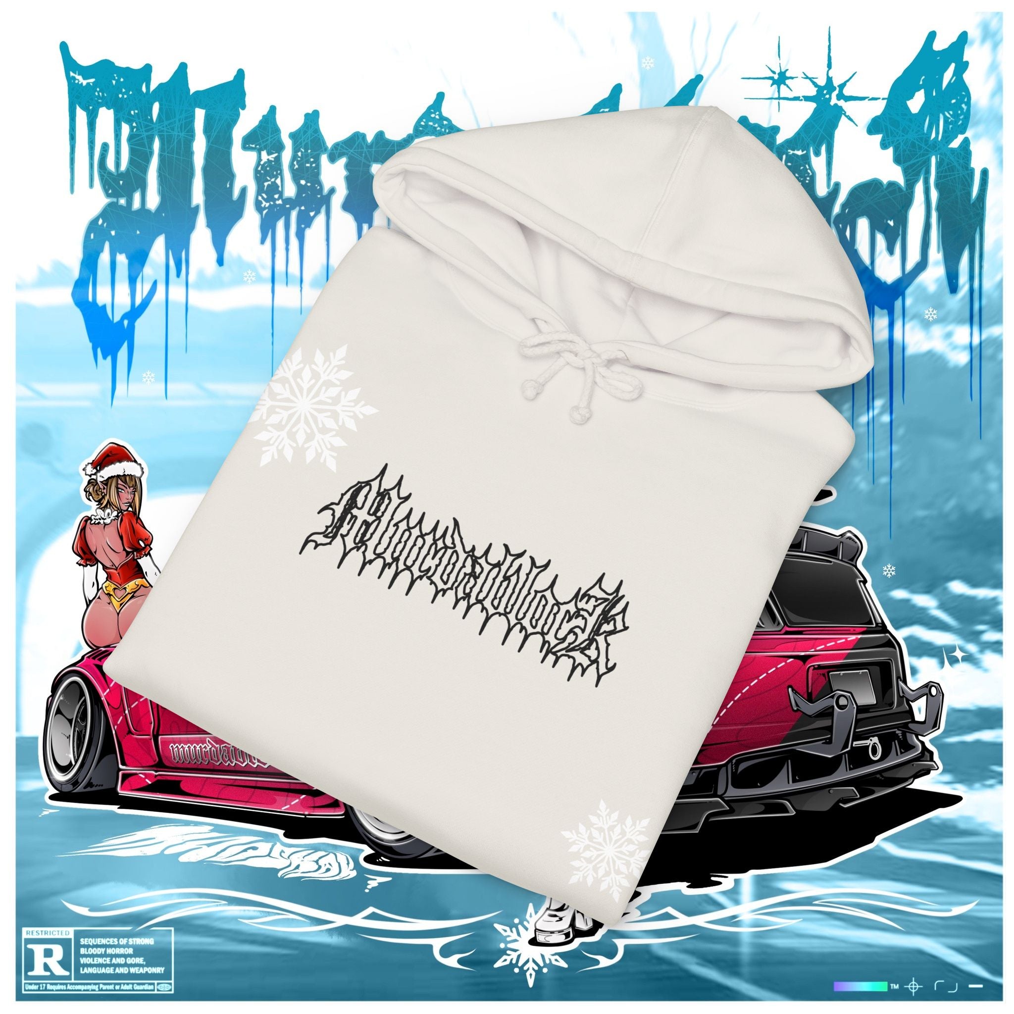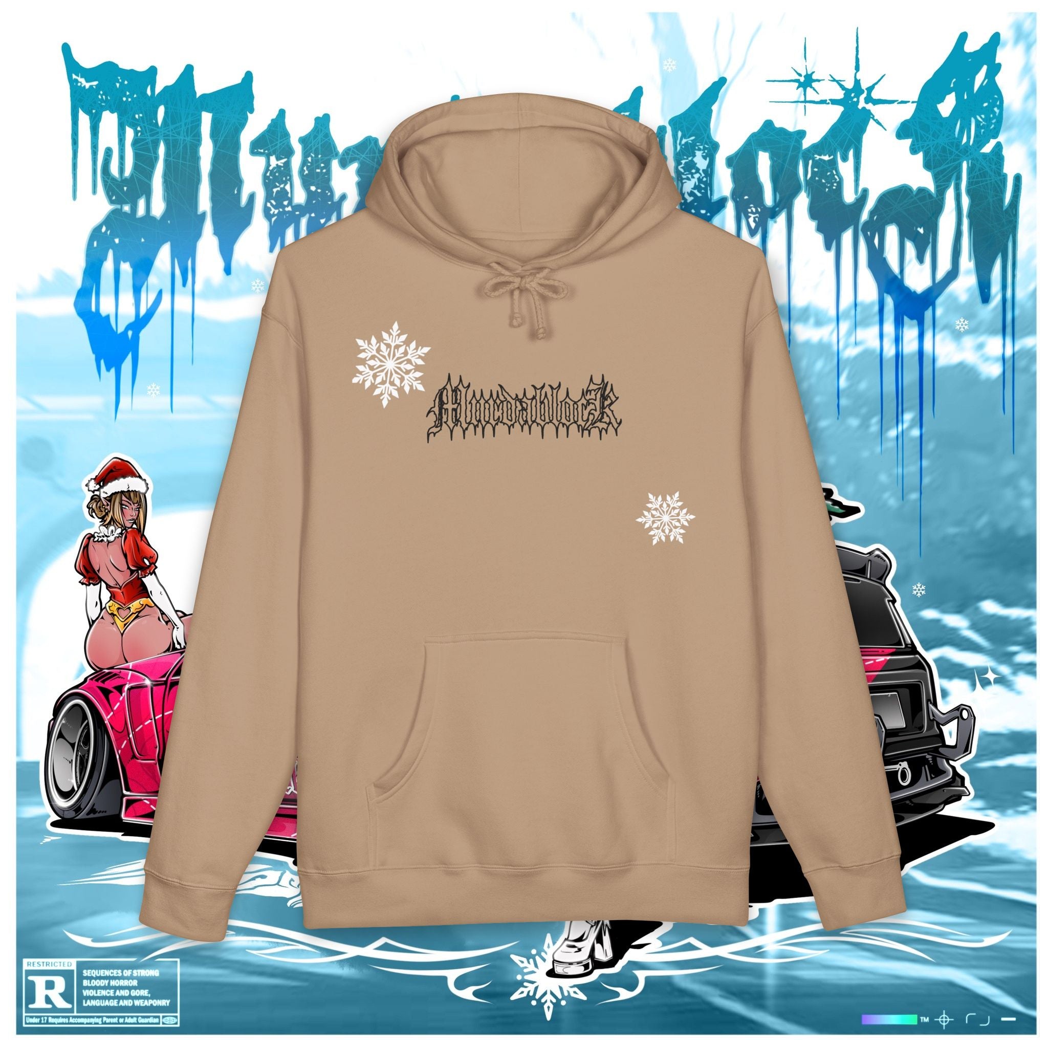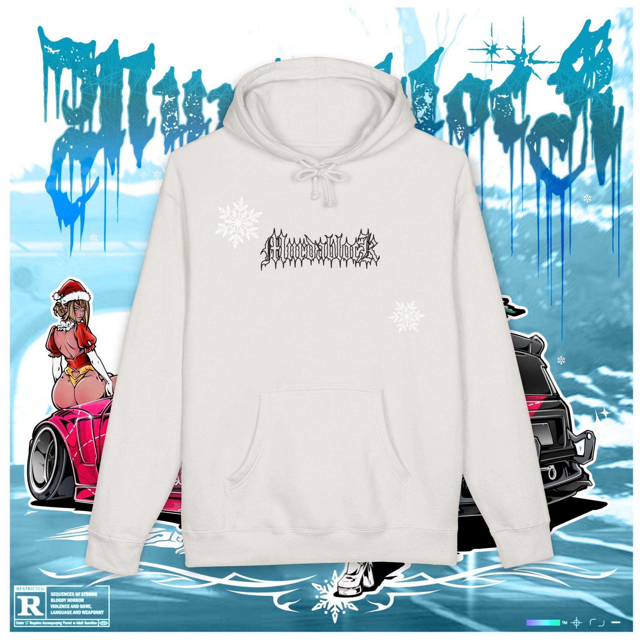 A heavyweight hooded sweatshirt that brings streetwise holiday attitude to cold days. The fleece-lined hood and substantial 10 oz fabric hold body heat without feeling bulky. Thoughtful details like ribbed cuffs and waistband, split-stitch seams, and a tear-away label keep the focus on comfort and wearability. Wear it when you want to make winter nights feel like a scene from a late-night cruise—cozy, loud, and full of personality.
